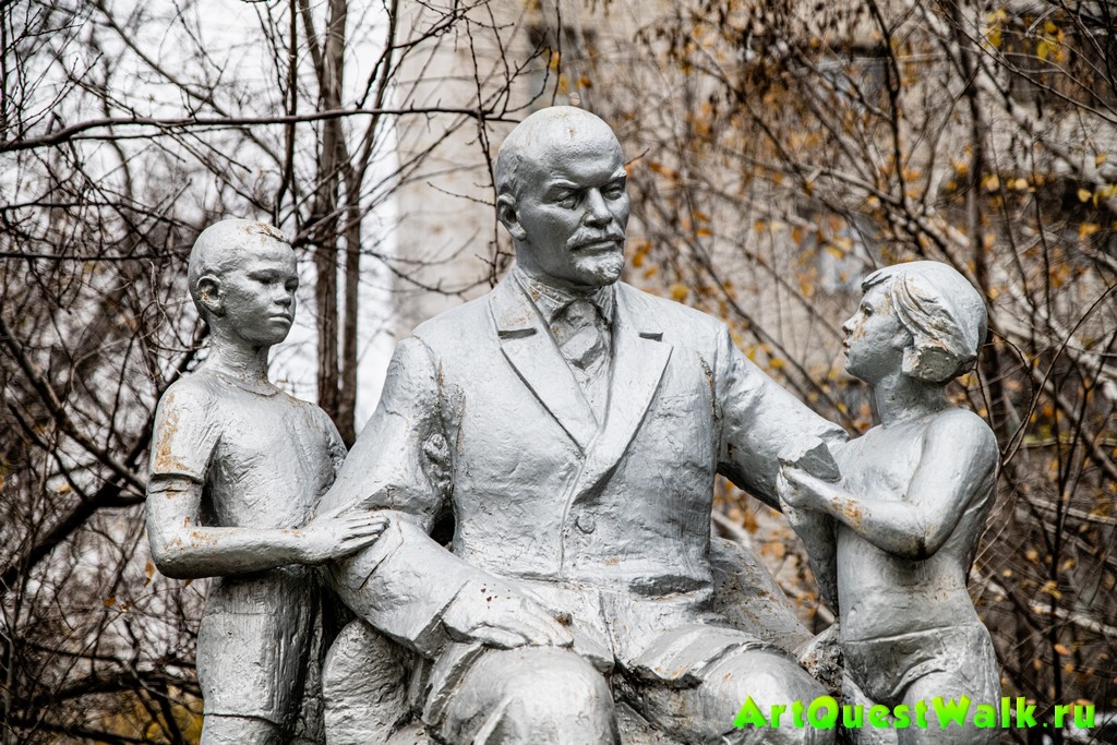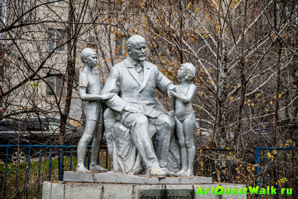 На заднем дворе Волгоградского колледжа машиностроения и связи в Кировском районе скромно расположилась трогательная скульптурная композиция «Ленин и дети». Памятник изображает сидящего вождя мирового пролетариата в окружении двоих детей, что делает его редким примером камерной советской скульптуры на тему вождя и подрастающего поколения.