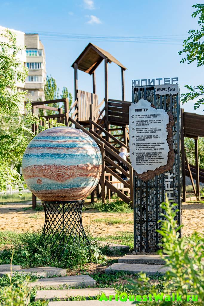 Квест «Тайны Солнечной системы» в Космопарке — это прогулка по благоустроенной территории, где объектами для разгадывания становятся макеты планет. У каждой из них — свой вопрос, а правильные ответы постепенно складываются в итоговый код. Маршрут проходит по аллеям парка, захватывая зону с фигурой космонавта, граффити-кубы и игровые площадки. Начать можно в любое удобное для Вас время